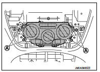 2. Remove A/C control fixing screws (A) and fixing pawls, and then remove A/C control.