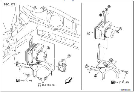 6. Remove ABS actuator and electric unit (control unit) and bracket.