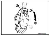 4. Disconnect ABS actuator and electric unit (control unit) harness connector (1), follow the procedure described below.