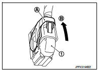• After installing the ABS actuator and electric unit (control unit) harness connector (1), move the lever (A) in the direction (B) to secure the locking.