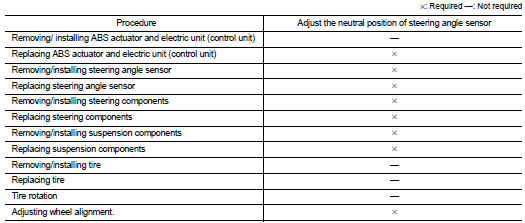 Always adjust the neutral position of steering angle sensor before driving when the following operation is performed.