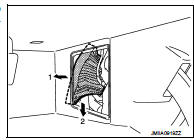 1. Remove glove box assembly. Refer to IP-13, "Removal and Installation".