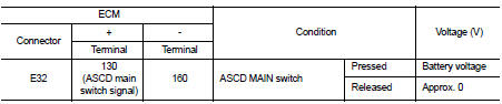1.CHECK ASCD MAIN SWITCH POWER SUPPLY CIRCUIT