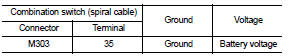 4. Check voltage between combination switch (spiral cable) harness connector and ground.