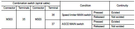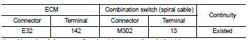 3. Check the continuity between combination switch (spiral cable) harness connector terminals under the following condition.