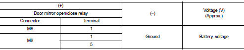 3. Check the continuity between door mirror close relay terminals under the following conditions.