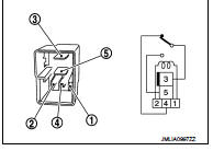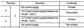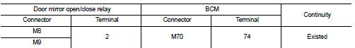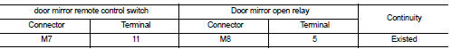 3. Check the continuity between door mirror open relay terminals under the following conditions.