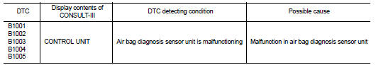 Nissan Juke Service and Repair Manual : B1001, B1002, B1003, B1004, B1005 diagnosis sensor unit