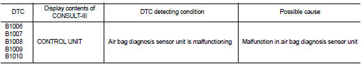 Nissan Juke Service and Repair Manual : B1006, B1007, B1008, B1009, B1010 diagnosis sensor unit