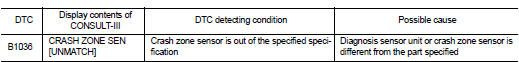 Nissan Juke Service and Repair Manual : B1036 crash zone sensor