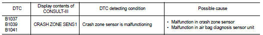 Nissan Juke Service and Repair Manual : B1037, B1039, B1041 crash zone sensor