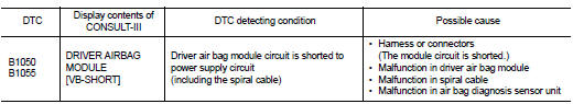 Nissan Juke Service and Repair Manual : B1050, B1055 driver air bag module