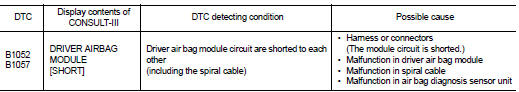 Nissan Juke Service and Repair Manual : B1052, B1057 driver air bag module
