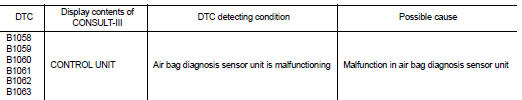 Nissan Juke Service and Repair Manual : B1058, B1059, B1060, B1061, B1062, B1063 diagnosis sensor unit