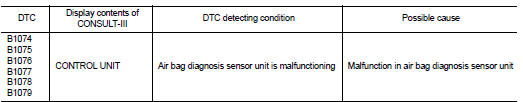 Nissan Juke Service and Repair Manual : B1074, B1075, B1076, B1077, B1078, B1079 diagnosis sensor unit