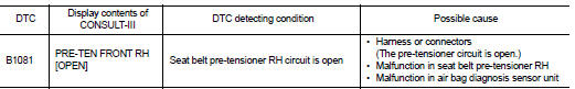 Nissan Juke Service and Repair Manual : B1081 seat belt Pre-tensioner RH