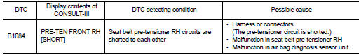 Nissan Juke Service and Repair Manual : B1084 seat belt Pre-tensioner RH