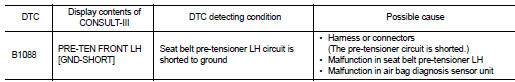 Nissan Juke Service and Repair Manual : B1088 seat belt Pre-tensioner LH
