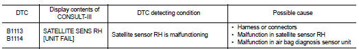 Nissan Juke Service and Repair Manual : B1113, B1114 satellite sensor RH