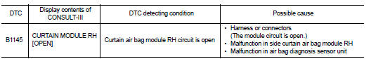 Nissan Juke Service and Repair Manual : B1145 curtain air bag module RH