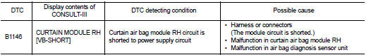 Nissan Juke Service and Repair Manual : B1146 curtain air bag module RH
