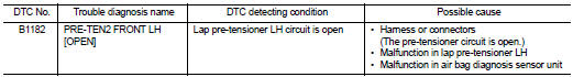 Nissan Juke Service and Repair Manual : B1182 lap Pre-tensioner LH