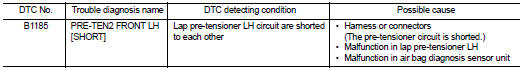 Nissan Juke Service and Repair Manual : B1185 lap Pre-tensioner LH