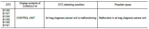 Nissan Juke Service and Repair Manual : B1186, B1187, B1188, B1189, B1190, B1191 diagnosis sensor unit