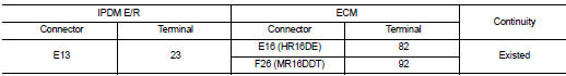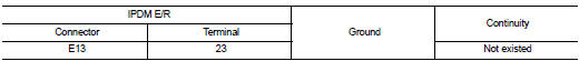 4. Check continuity between IPDM E/R harness connector and ECM harness connector.