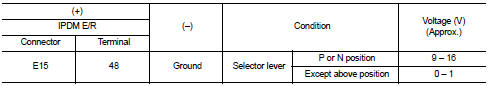 - Selector lever: In the P position - Brake pedal: Depressed 2. Check DTC in “Self Diagnostic Result” mode of “IPDM E/R” using CONSULT-III.