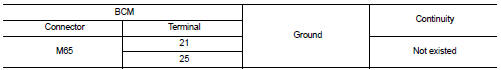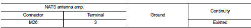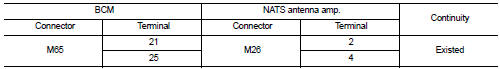 2. Check continuity between BCM harness connector and NATS antenna amp. harness connector.