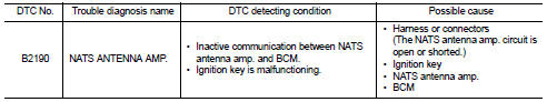 Check NATS antenna amp. Installation. Refer to SEC-233, "Removal and Installation".