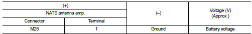 3. Check voltage between NATS antenna amp. harness connector and ground.