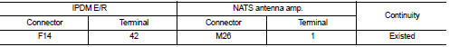 2. Check continuity between IPDM E/R harness connector and NATS antenna amp. connector.
