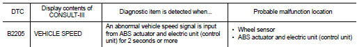 Nissan Juke Service and Repair Manual : B2205 vehicle speed