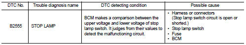 Nissan Juke Service and Repair Manual : B2555 stop lamp