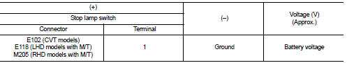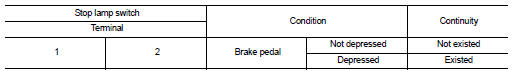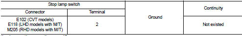 NO >> Replace stop lamp switch. Refer to BR-21, "Removal and Installation" (LHD) or BR-89, "Removal and Installation" (RHD).