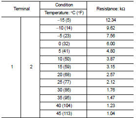 2. Check resistance between intake sensor terminals. Refer to applicable table for the normal value.