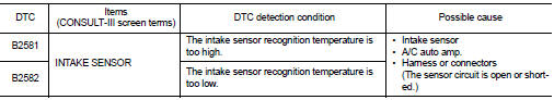 Nissan Juke Service and Repair Manual : B2581, B2582 intake sensor