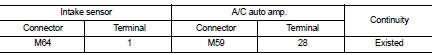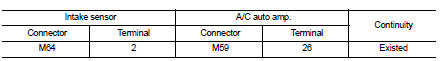 3. Check continuity between intake sensor harness connector and A/C auto amp. harness connector.