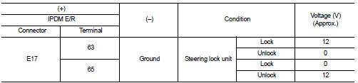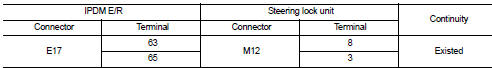 2. Check continuity between IPDM E/R harness connector and steering lock unit harness connector.