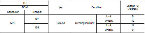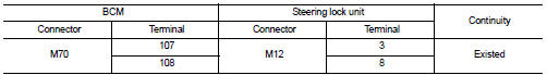 2. Check continuity between BCM harness connector and steering lock unit harness connector.