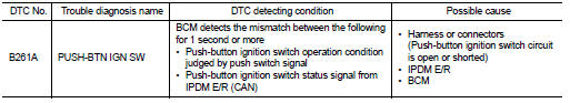 • If DTC B261A is displayed with DTC U1010, first perform the trouble diagnosis for DTC U1010. Refer to BCS-84, "DTC Logic".