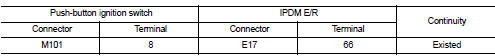 1. Check continuity between push-button ignition switch harness connector and IPDM E/R harness connector.
