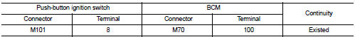 2. Check continuity between push-button ignition switch harness connector and BCM harness connector.