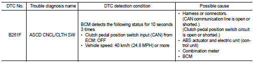 Nissan Juke Service and Repair Manual : B261F ASCD clutch switch