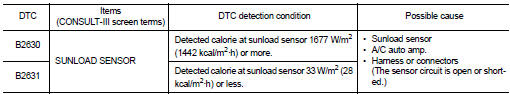 Nissan Juke Service and Repair Manual : B2630, B2631 sunload sensor