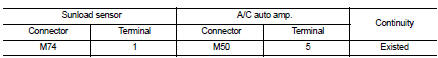 3. Check continuity between sunload sensor harness connector and A/C auto amp. harness connector.