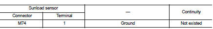 Check continuity between sunload sensor harness connector and ground.