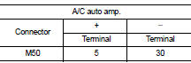 2. Check voltage between A/C auto amp. harness connector and ground. Refer to applicable table for the normal value.